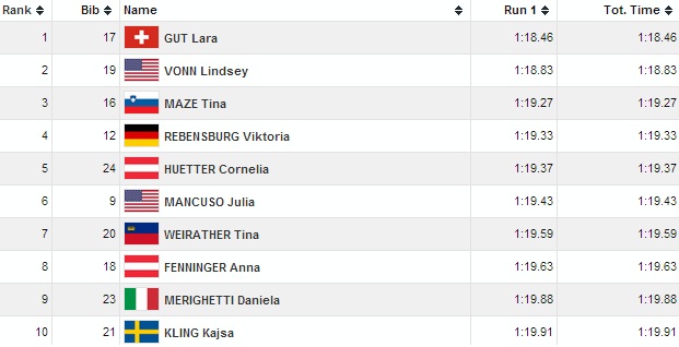 laragutŠvajčiarska reprezentantka v alpskom lyžovaní Lara Gutová vyhrala super-G Svetového pohára v alpskom lyžovaní žien v kanadskom Lake Louise časom 1:18,46. Vo veľkej forme sa do kolotoča Svetového pohára vrátila po zranení Lindsey Vonnová z USA, pričom sa dnes tešila z druhej pozície +0,37. Tretie miesto putuje do Slovinska zásluhou víťazky piatkového zjazdu Tiny Mazeovej, ktorá preťala cieľovú čiaru o 0,81 sekundy neskôr ako víťazka.