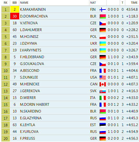 TOP 20 biatlonistiek v disciplíne vytrvalostné preteky na 15 km v rámci 8. Kola SP v Osle Holmenkollene: