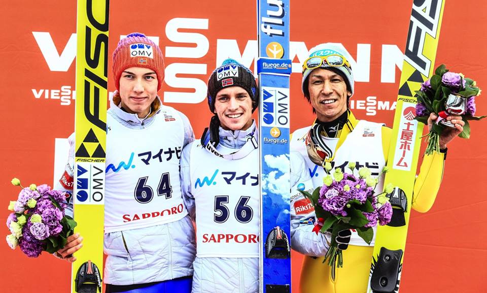 Nedeľňajšie preteky boli prvé, v ktorých sa súčasný líder rebríčka Peter Prevc neumiestnil na pódiu. So skokmi 130,0 a 129,0 obsadil šieste miesto. Slovinskú radosť z prvého dňa vystriedala radosť z Nórska. Triumfoval Anders Fannemel s náskokom 5,6 bodu na krajana Johanna Andrema Forfanga. Tretie miesto obsadila nestarnúca legenda, domáci miláčik, Noriaki Kasai.