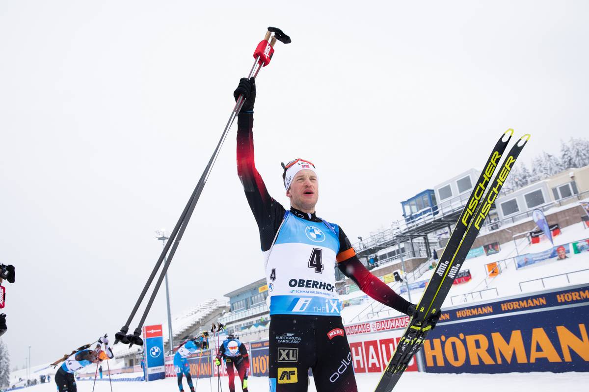 Tarjei Bø ist durch und feiert mit einem Vorsprung von 8,2 Sekunden den Sieg vor seinem jüngeren Bruder Johannes Thingnes Bø. Den engen Kampf um den verbliebenen Platz auf dem Podest entscheidet Sprint-Sieger Simon Desthieux für sich. Tarjei Bø und Johannes Thingnes Bø können heute wieder gemeinsam auf dem Podest stehen. Beide hatten nur im ersten Schießen gepatzt und sich von da an wieder nach vorne gekämpft. Auch in der Summe konnte sich das Ergebnis der Norweger wieder sehen lassen. Laegreid wurde Fünfter. Endre Strømsheim zeigt, dass auch von hinten starke Biathleten nachkommen. Auch bei seinem zweiten Einsatz in diesem Winter landete er mit Platz 13 in den Top Ten.