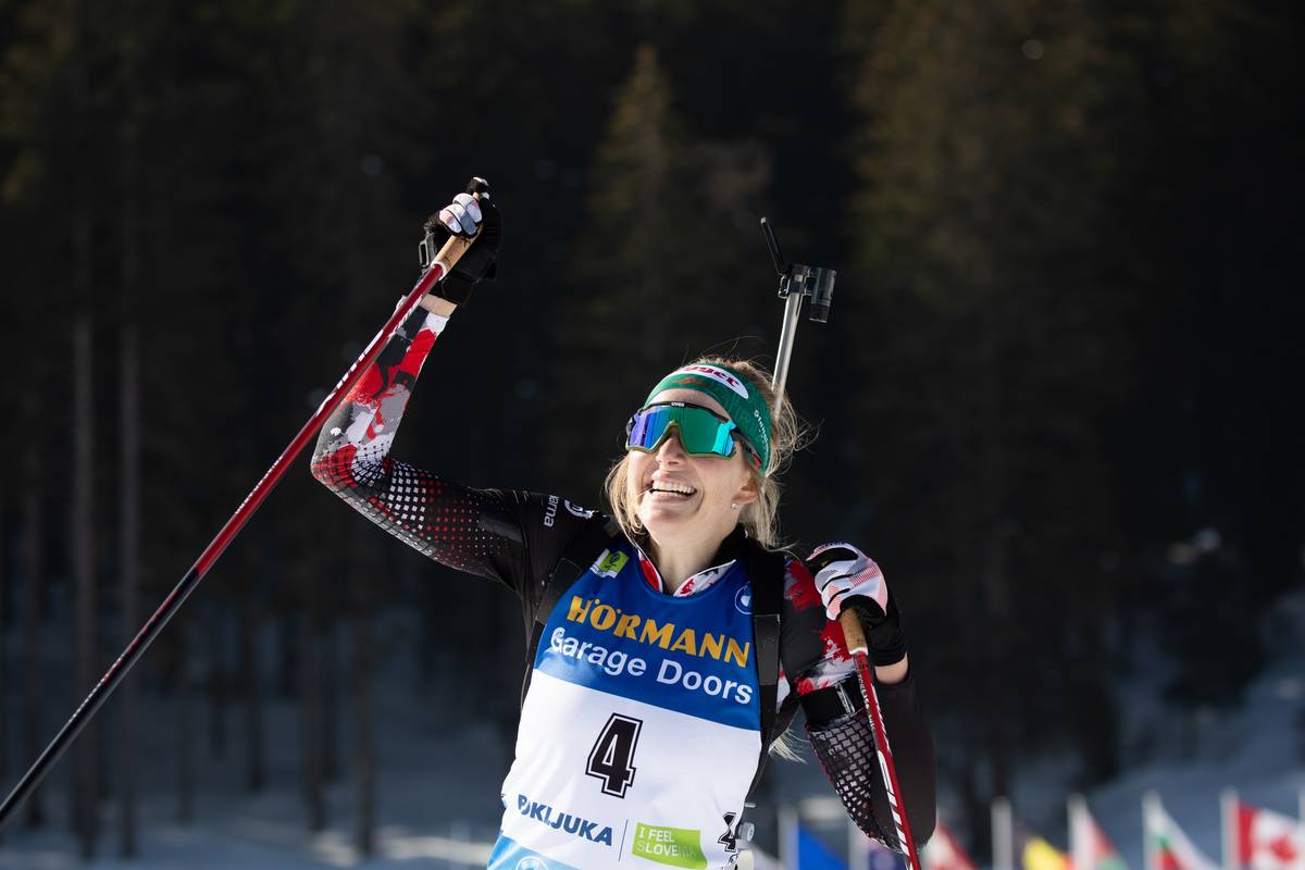 Rakúšanke k tretiemu triumfu v kariére napomohla presná streľba. Na strelnici vybielila všetkých 10 terčov a pridala solídny beh. Na druhom mieste sa umiestnila domáca Elvíra Oebergová. Aj napriek dvom ranám mimo predviedla Švédka veľmi kvalitný beh a za víťaznou Hauserovou zaostala iba o 12,5 sekundy. Tretie miesto obsadila ďalšia rýchla bežkyňa Hanna Solová z Bieloruska.