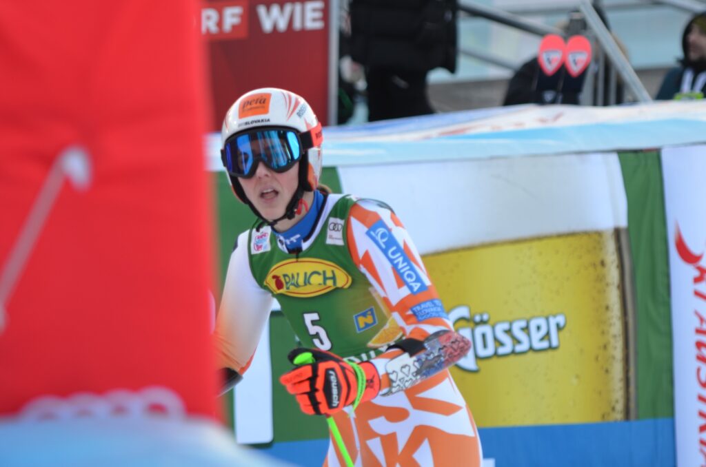 Petra Vlhová v sobotnom slalome Svetového pohára v alpskom lyžovaní útočí na pódium, pričom je aktuálne tretia s odstupom 0,46 sekundy.