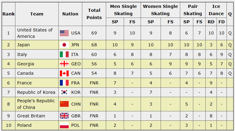 Výsledky – tímová súťaž – ZOH Miláno – Cortina: