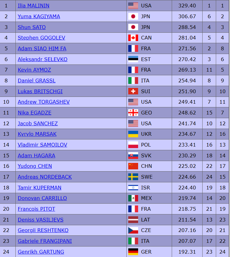 Majstrom sveta sa stal favorizovaný Ilia Malinin z USA pred japonskou dvojicou Juma Kagijama a Šun Sato.